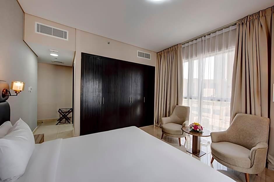This apartment features a seating area, toaster and electric kettle.